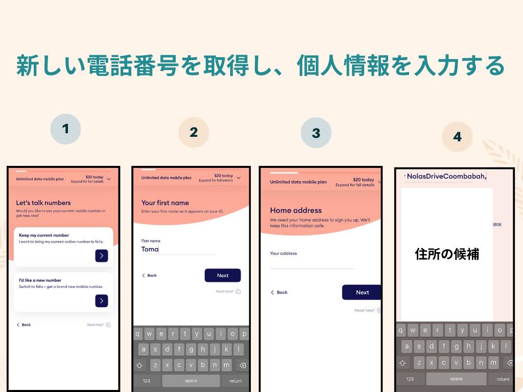 Step 2:新しい電話番号を取得し、個人情報を入力する