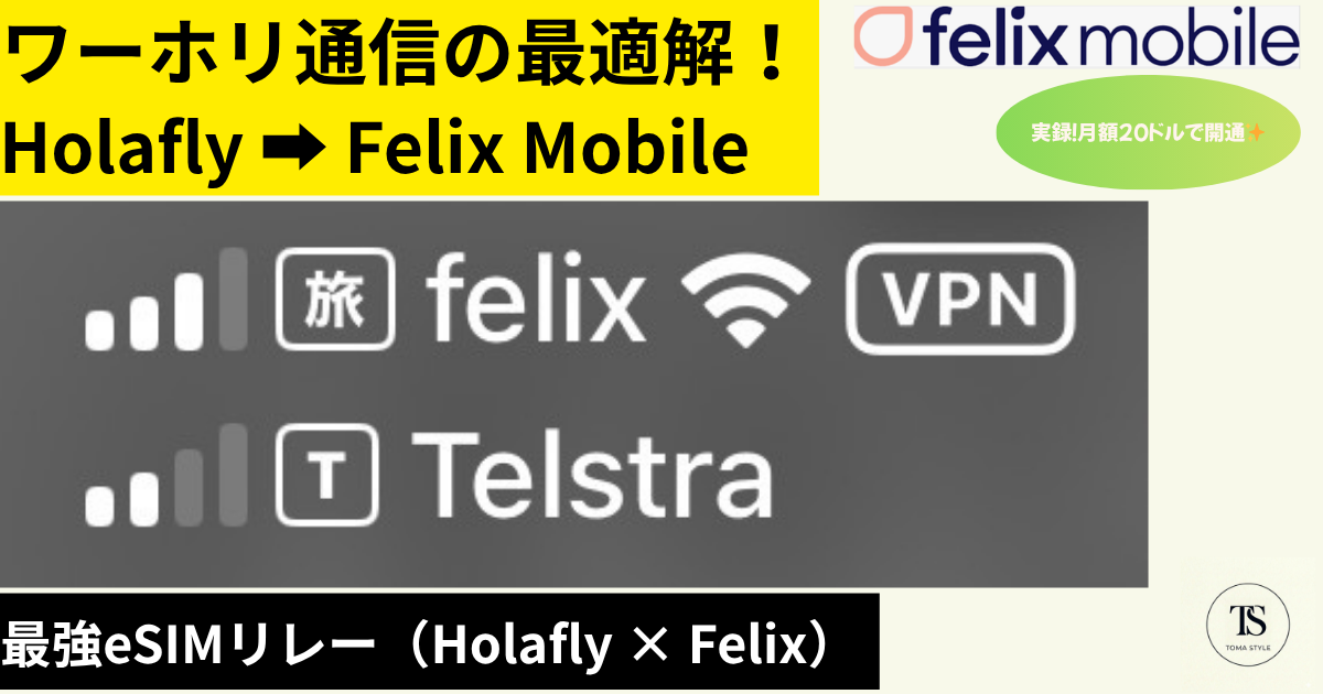 オーストラリア到着直後の不安な時間は「Holafly」でサクッと乗り切り、落ち着いたら「Felix Mobile」の無制限プランで現地の電話番号と圧倒的なコスパを手に入れる。