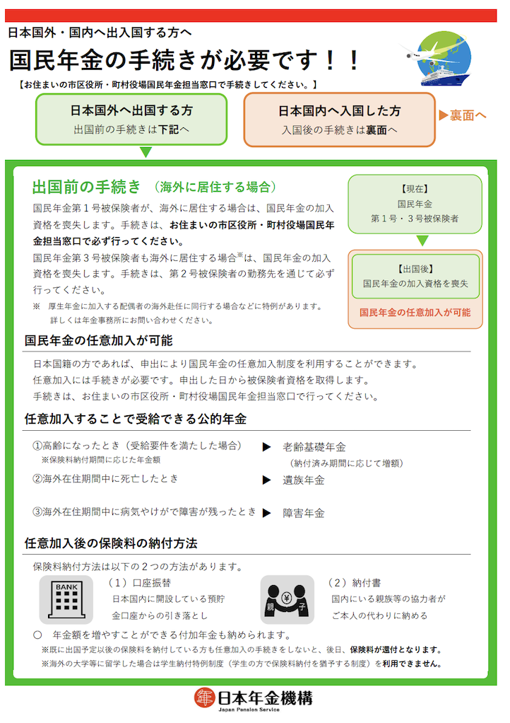 日本を離れる際、役所で**「海外転出届」を出さないと、日本に住んでいないのに「国民年金」「国民健康保険」「住民税」**の請求が毎月届き続けます。